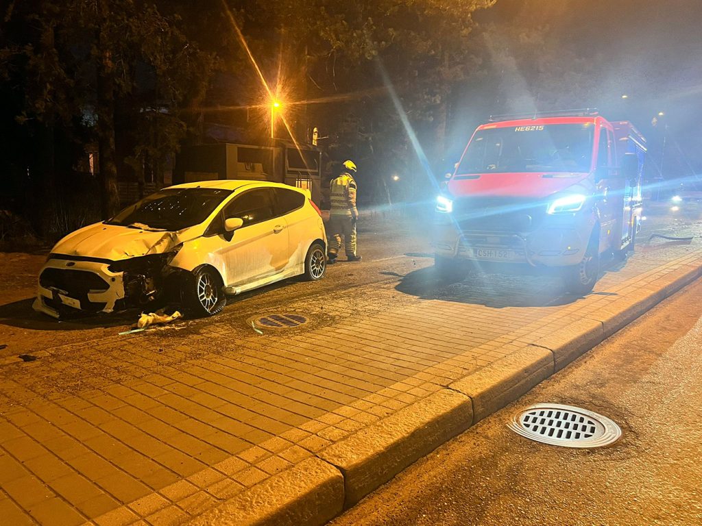 Sunnuntaina 29.3. aamuyöstä noin kello 05.15 aikaan oli henkilöauto törmännyt liikennemerkkiin ja kaupunkipyörätelineisiin Kallvikintien–Koukkusaarentien kiertoliittymän kohdalla, vastapäätä Lidlin myymälää. Auto vahingoittui törmäyksessä pahoin, ja paikalle tuli poliisin ja pelastuslaitoksen yksiköitä.