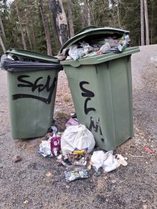 Lukija ihmettelee Uutelan jätteitä pursuavia roskiksia.